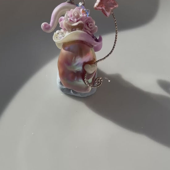 Materials: Natural freshwater pearl (mostly baroque) + gold-/silver-plated copper + hand-sculpted, hand-painted UV-cured resin hat (nail-art gel) + clear protective sealing layer